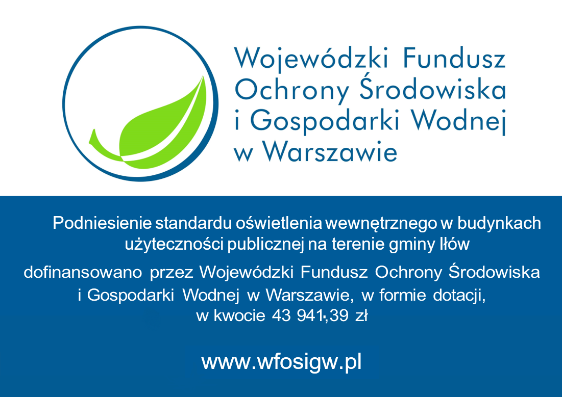 i Gospodarki Wodnej na realizację projektu pod nazwą: „Podniesienie standardu oświetlenia wewnętrznego w budynkach użyteczności publicznej na terenie gminy Iłów” w ramach Programu „Modernizacja oświetlenia”.