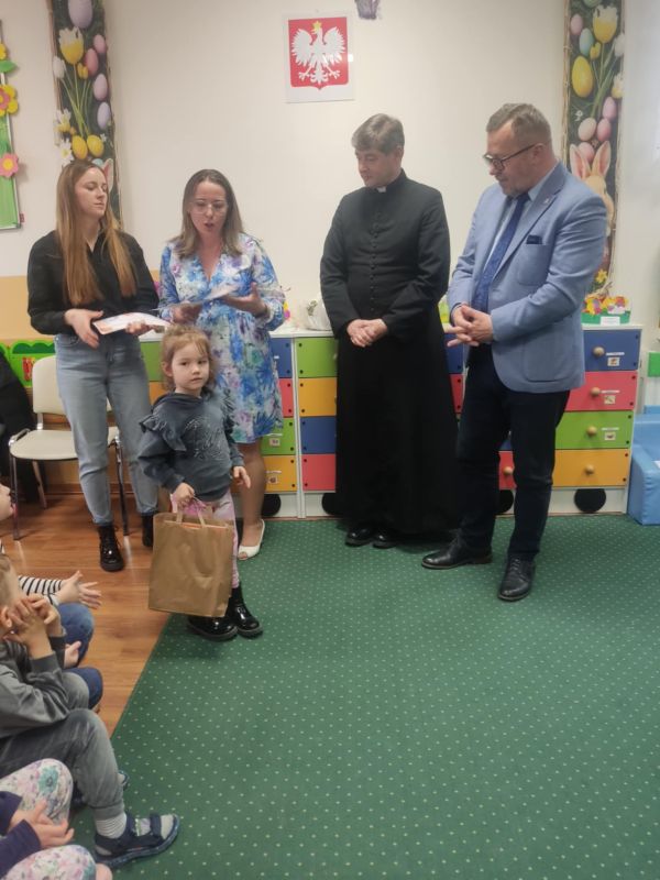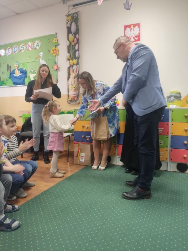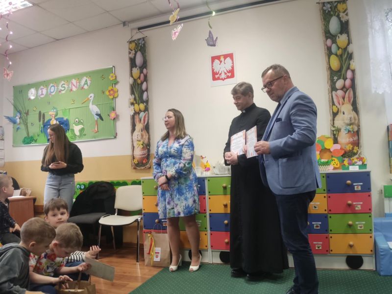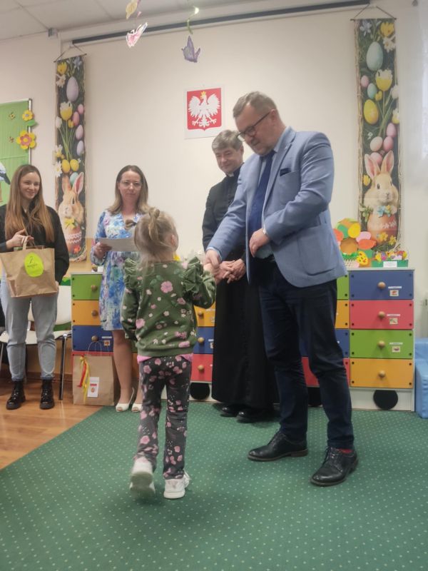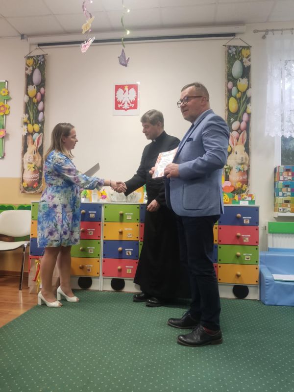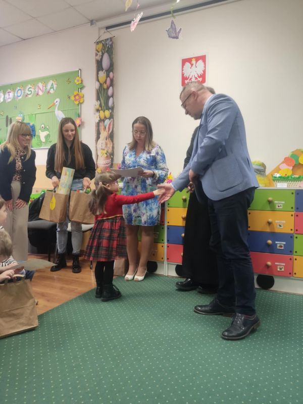 Na wręczaniu nagród w Przedszkolu Samorządowym w Iłowie zjawili się wykonawcy prac wraz z rodzicami, przedstawiciele Komisji Konkursowej przedstawiciele Rady Rodziców Przedszkola Samorządowego w Iłowie oraz zaproszeni goście: Wójt Gminy Iłów P. Jan Paweł Kraśniewski oraz Ksiądz Krzysztof Tempczyk Proboszcz Parafii Matki Bożej Królowej Polski w Iłowie. Pani dyrektor powitała wszystkich zebranych. Złożyła życzenia wielkanocne. Wójt Gminy oraz Ksiądz Proboszcz także skierowali słowo do zebranych na sali.