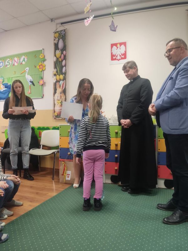 Kolejnym etapem było oczywiście nagrodzenie wykonawców. Każdy uczestnik konkursu otrzymał pamiątkowy dyplom oraz nagrodę za udział. Laureatami I Gminnego Konkursu „Najpiękniejsza ozdoba wielkanocna” zostali:
