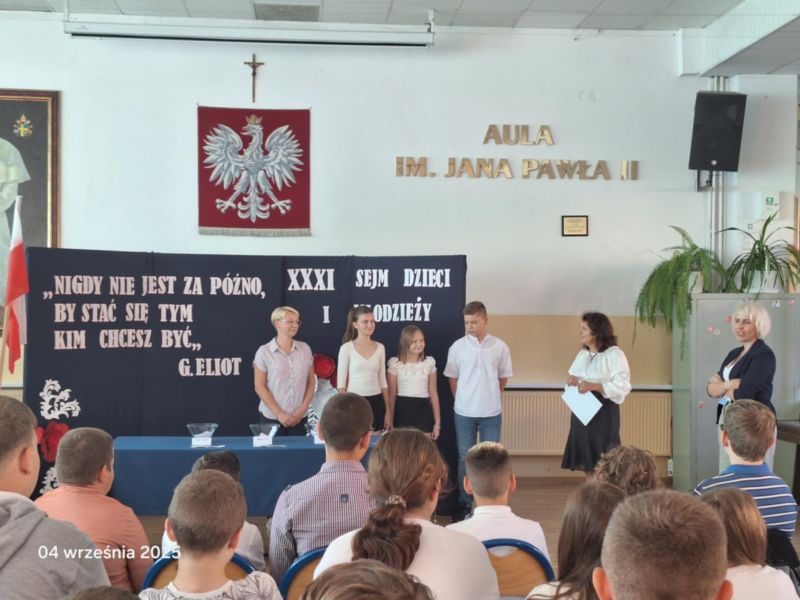 Udział Amelii, Patrycji i Filipa w XXXI sesji Sejmu Dzieci i Młodzieży to nie tylko zaszczyt dla nich samych, ale także ogromne wyróżnienie dla naszej szkoły i lokalnej społeczności. Pokazuje, że młodzież z Iłowa ma głos, który może wybrzmieć na forum ogólnopolskim – i że warto inwestować w edukację, która kształtuje świadomych obywateli.
