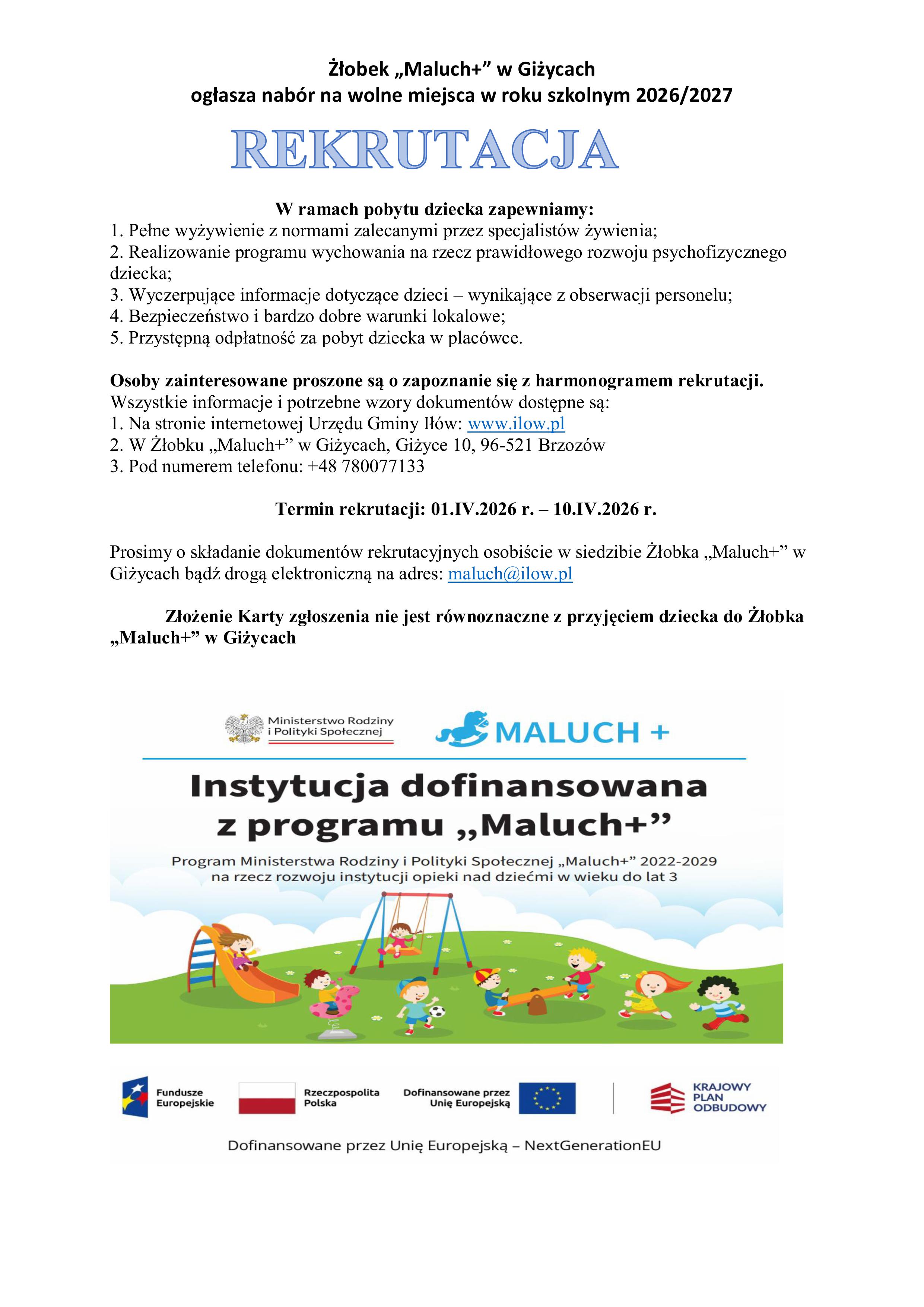 Rekrutacja do Żłobka Maluch+ w Giżycach