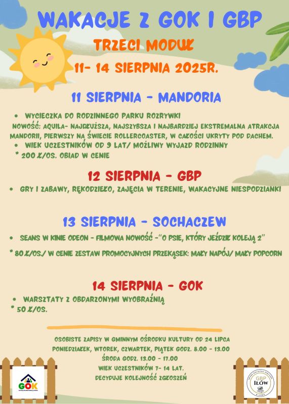 Drugi turnus wakacji z Gminnym Ośrodkiem Kultury i Gminną Biblioteką Publiczną w Iłowie